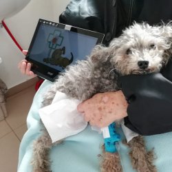 Já, Vetík, jsem projekt pomáhájící s placením veteriny týraným a opuštěným pejskům. Jak vidíte, Čertík opuštěný není. Panička poctivě absolvuje návštěvu veteriny pokaždé, kdy to její kamarád potřebuje. Ale vzhledem k tomu, že paní z ordinace známe již nějaký rok, tak víme, jak je pro ni veterina po finanční stránce náročná, i když to sama paní nikdy nepřiznala. A proto má náš obdiv. Její zdravotní problémy, které má od narození, jí neumožnily, aby měla rodinu, nemá vůbec nikoho, jenom Čertíka. Vždy i přes svůj hendikep chodila celý život poctivě do práce. Nyní je ale v důchodu, a přesto nikdy svému jedinému kamarádovi neodepřela jakékoli vyšetření či nákladnou ledvinovou dietu. Víte, mezi lidmi jsou i lidé dobří - ti, kteří právě čtou tyto řádky nebo takoví, jako je majitelka Čertíka. Bohužel, stejně jako u pejsků, i přes dobrotu těchto lidí se s některými z nich život nemazlil. Proto jsem udělal výjimku a vykouzlil tentokrát úsměv na tváři nejen Čertíkovi, ale také jeho paničce.