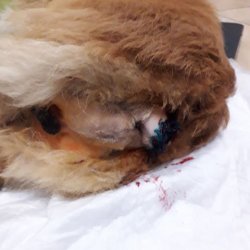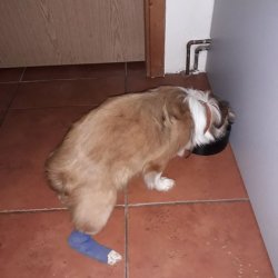 RTG u Dastíka odhalil, že měl zlomenou páteř, obratle mu naštěstí neporanily míchu, ale zadní nožky, pravděpodobně právě po zranění páteře, zůstaly ochromené. Tím došlo k atrofii svalstva, uvolnění šlach u úponů k prstíkům na zadních nožkách. Dasty se nemůže na nožičky normálně postavit, chodí po patách a čeká ho velká, nákladná operace.