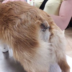 Rentgenovým vyšetřením se také potvrdila zlomenina ocásku, který špatně srostl (do pravého úhlu). Dastík absolvoval kastraci a zároveň mu byl ocásek amputován. Tohoto malého fešáka však trápí rovněž problémy s vyprazdňováním, neuvědomuje si, že se vyprazdňuje a jak říkají tety z organizace Pro psí duši, udělá to kdekoli a kdykoli. Dasty si toto vůbec nepřipouští a raduje se že života naplno.